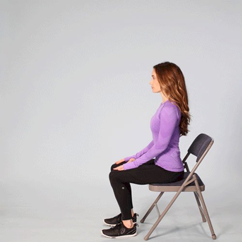 Then lower again to sit. Be sure your bent knees don’t move ahead of your toes.